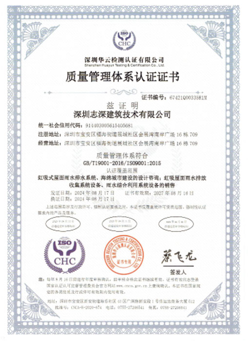 志深公司成立于2010年,總部位于深知,工廠位于廣東省江門市鶴山共和工業園。作 為建筑新技術領域的領軍企業,公司專注于虹吸雨水排水系統,雨水收集利用系統以及海綿城市建設的研發、設計、生產、銷售和安裝服務。經過十余年的創新發展,志深已成為海綿城市建設和排水技術領域全球知名的領先品牌和市場引導者